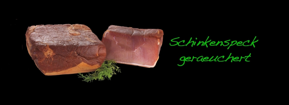 sauber zugeschnittene Schweinehüften, trocken gesalzen und natur gereift; mild über Buchenholz geräuchert; zart im Biß.